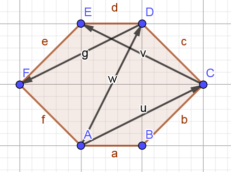 6)Գծե՛ք ABCDEF վեցանկյուն: Կառուցեք հետևյալ վեկտորները. AC + CE և AD+DF: