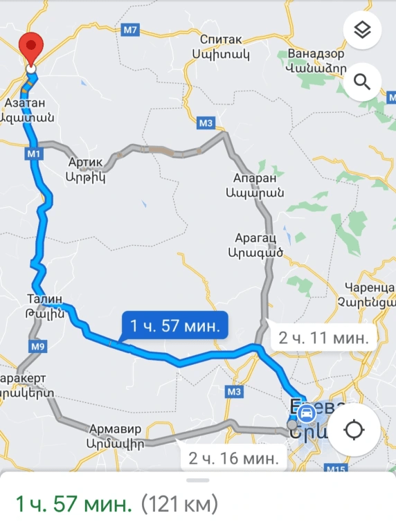 Այս ճամփով մենք կգնանք Գյումրի։ Մենք մեր դասրանով գնալույենք Գյումրի 1 Ժամում ու 57 րոպեյում։ Երեվան մինև գյումրի 121կիլոմերր Գյումիյում տաս-տասնհինգ գրադուս ցելիսյա։